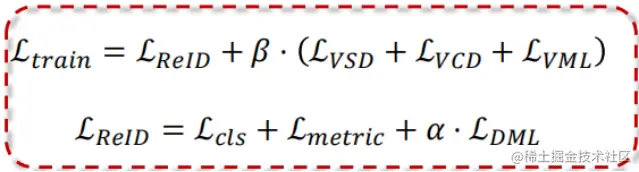 损失函数由两部分构成,即论文中提出的变分蒸馏,以及 Re-ID 最常用的训练约束。注意 VSD 只约束单模态分支,而 VCD 协同 VML 一起约束跨模态分支。