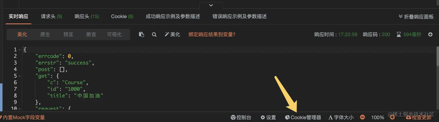 COOKIE管理器最主要的作用是保存并管理请求接口时服务器返回的cookie,然后在其他接口需要使用到cookie的时候会自动携带到接口中。