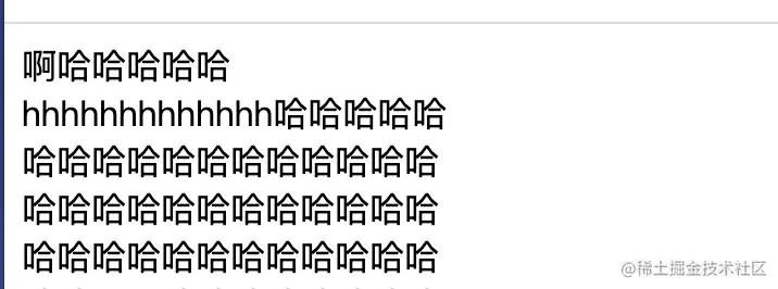 可以看到,整个英文这块直接放到了下一行。因为浏览器会将整个这一段英文作为一个单词,第一行放不下了,就直接放到了第二行