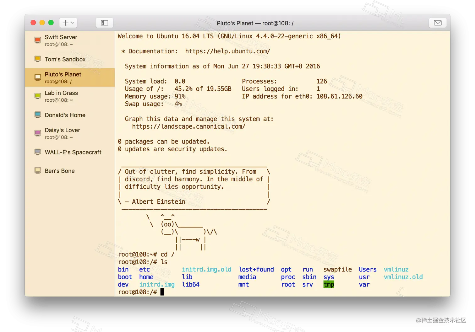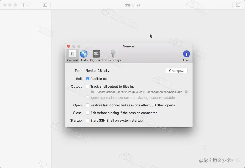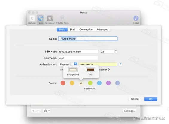 | 一、值得注意的功能 可以管理不同服务器的多个ssh会话 断开连接或从睡眠状态唤醒后自动重新连接 请记住并自动在OS X钥匙串中自动填写ssh登录密码 能够管理私钥,并能记住/忘记钥匙串中私钥的密码 服务器可以作为JSON文件导入/导出 集成终端与Terminal.app / xterm / iTerm2兼容 | |