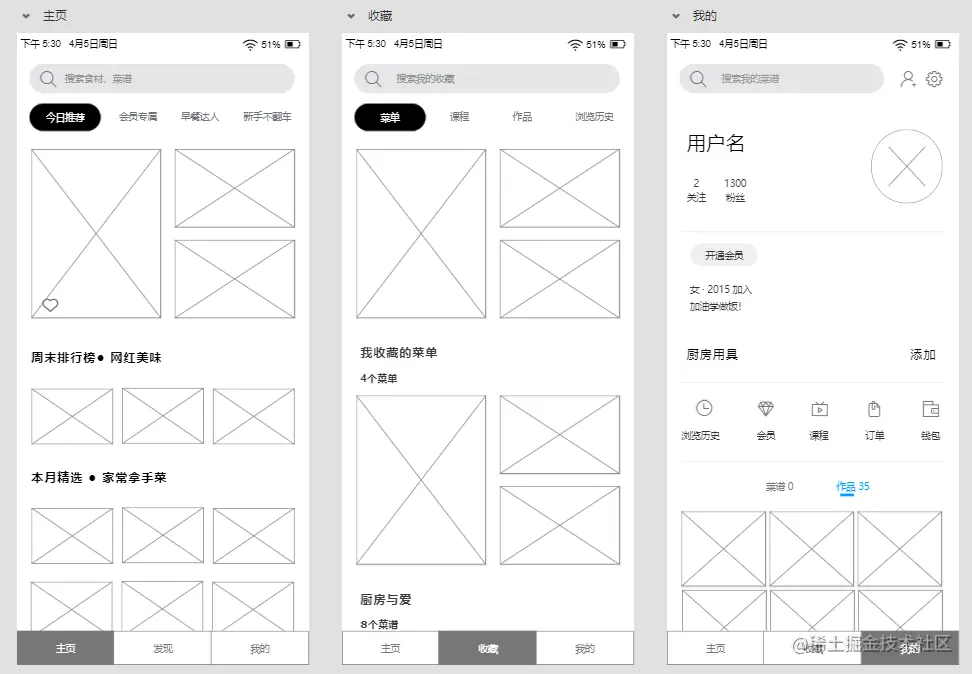这里给大家show一个基础的线框原型,面对这样干净整洁的页面,谁能对它说“达咩”呢?🧐