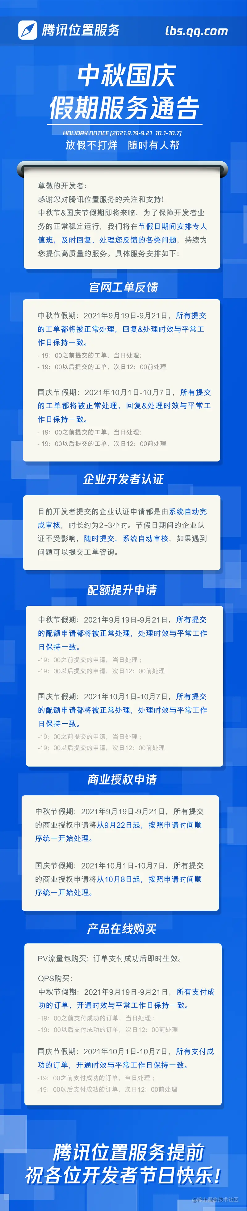 腾讯位置服务2021年中秋节&国庆节假期服务公告