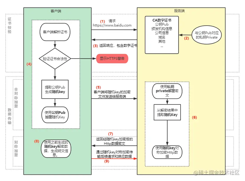 - 非对称加密:加密和解密需要使用两个不同的密钥(公钥(public key)和私钥(private key))