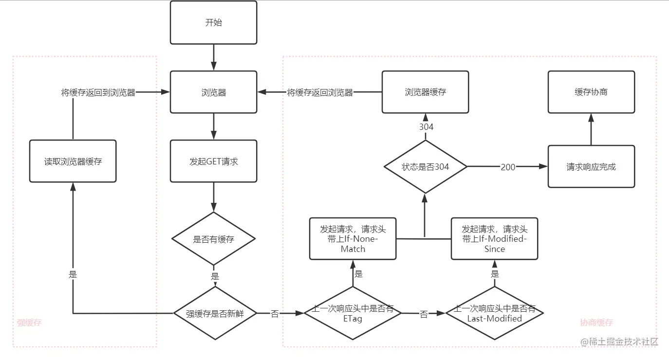 | Expires: 时间不准 Cache-Control: 1. max-age:缓存时间计算的方式是距离发起时间的秒数,超过间隔的秒数缓存失效。 2. no-cache:不使用强缓存,需要与服务器验证缓存是否新鲜。 3. no-store:禁止使用缓存(包括协商缓存),每次都向服务器请求最新的资源。 4. must-revalidate:在缓存过期前可以使用,过期后必须向服务器验证。 | ETag/if-None-Match,hash码,代表的是一个资源的标识符。 Last-Modified/If-Modified-Since,文件的最后修改时间。 |
