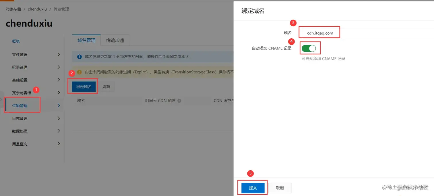 这里会自动添加 CNAME 记录,不需要自己去解析域名,此时就可以使用自定义的域名访问文件了