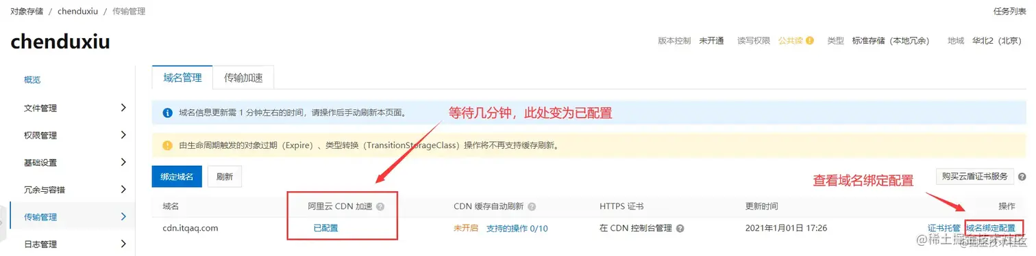 等待几分钟,配置成功,点击右侧的域名绑定配置