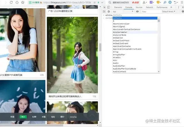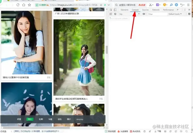 F12,即可打开浏览器控制台,我们今天要做的是获取所有的图片链接,顺便查看下图片。如下图: