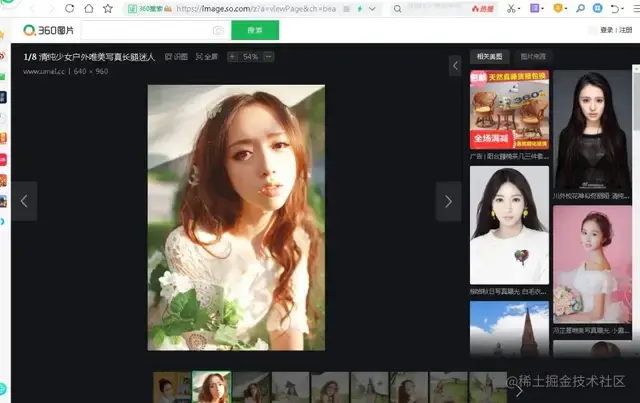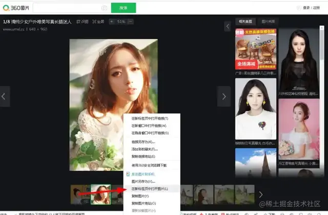 希望上面的方法应该不会让读者眼花缭乱才是,因为Js是一门动态语言,所以它的骚操作实在是太多了,你懂的。言归正传,如果我们现在想快速查看某一张图片,那么怎么办呢?有人说单击它,我想告诉你的是,虽然这可以实现查看功能,但这是在被包裹的网页中查看,如果我们在单独的网页中查看了,比如说这样: