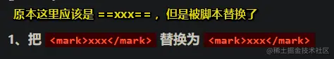 ==高亮文本的问题】把==xxx==替换为<mark>xxx</mark>。 - 【解决掘金Markdown编辑器不支持