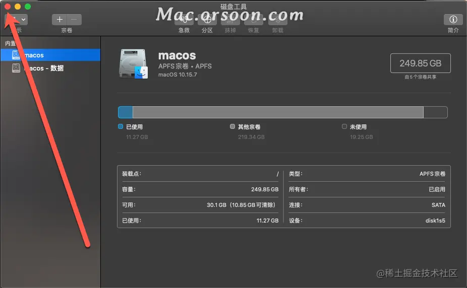 4.之后就可以看到我们的Mac电脑的容量了
