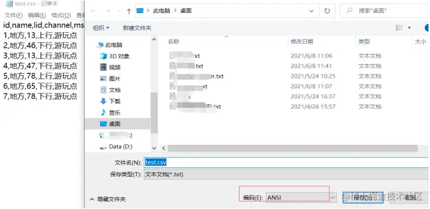 先记事本打开.csv文件,在另存里会看到文件的编码格式(ANSI)。
