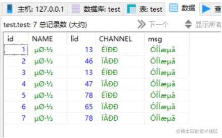 Mysql数据库和sqlite数据库是我们做开发最常用到的两种数据库,在我们使用mysql数据库开发时,导入excel出现中文乱码,下面的name、channel和msg这三个字段都出现了乱码的情况,只有数字是正常的。