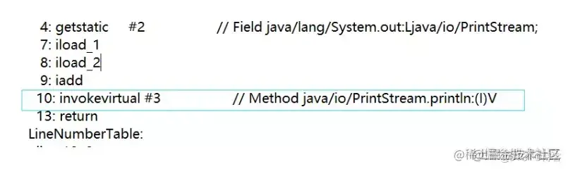 比如当如下 println() 方法被调用时,系统需要明确知道该方法的位置。举例:输出操作 System.out.println() 对应的字节码: