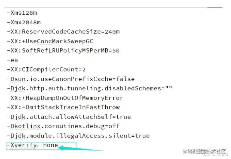这里可以查看 IDEA 的启动参数,它的启动参数里面就有一项 -Xverify:none。