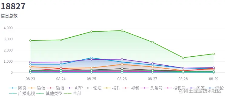 8月23日0时至8月29日23时,全网关于信创的舆情总量共18827条。传播趋势方面,前期舆情声量呈缓慢上升趋势,舆情热度在8月26日达到高峰,日声量3746条,周末热度走低。