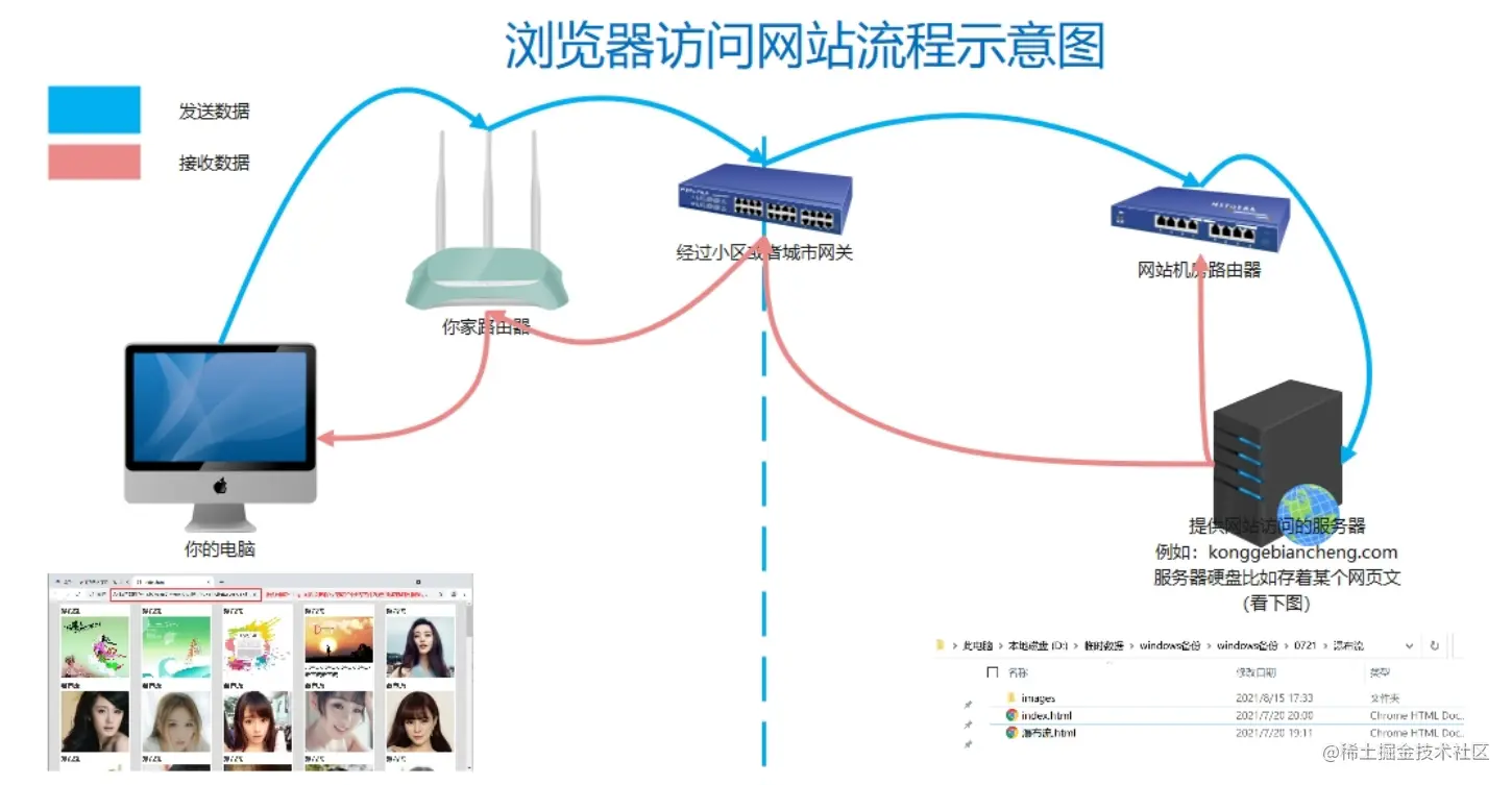 实际这个过程就是去按照网址的地址找到那台开着网站服务的服务器里面存储的内容罢了。