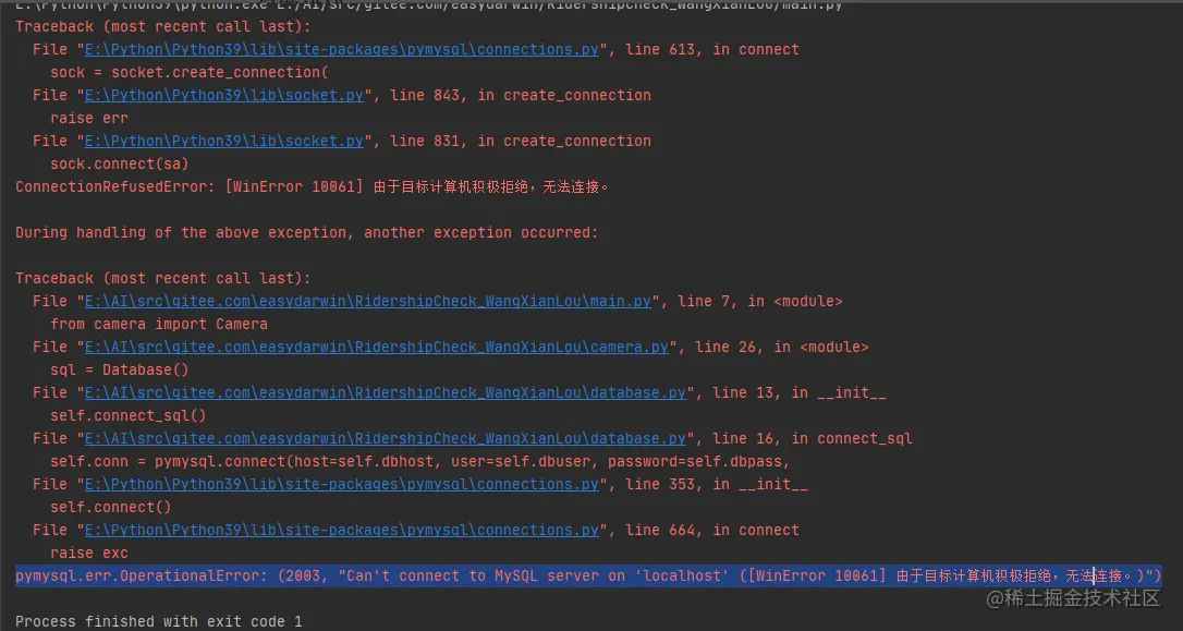 上一篇我们解决了通过Python3来开发行人分析运行ridership.exe时,出现报错index out of range的问题优化,本文我们来分享开发过程中遇到的另一个问题:Python3 分析行人检查,程序直接运行后mysql拒绝访问的问题。