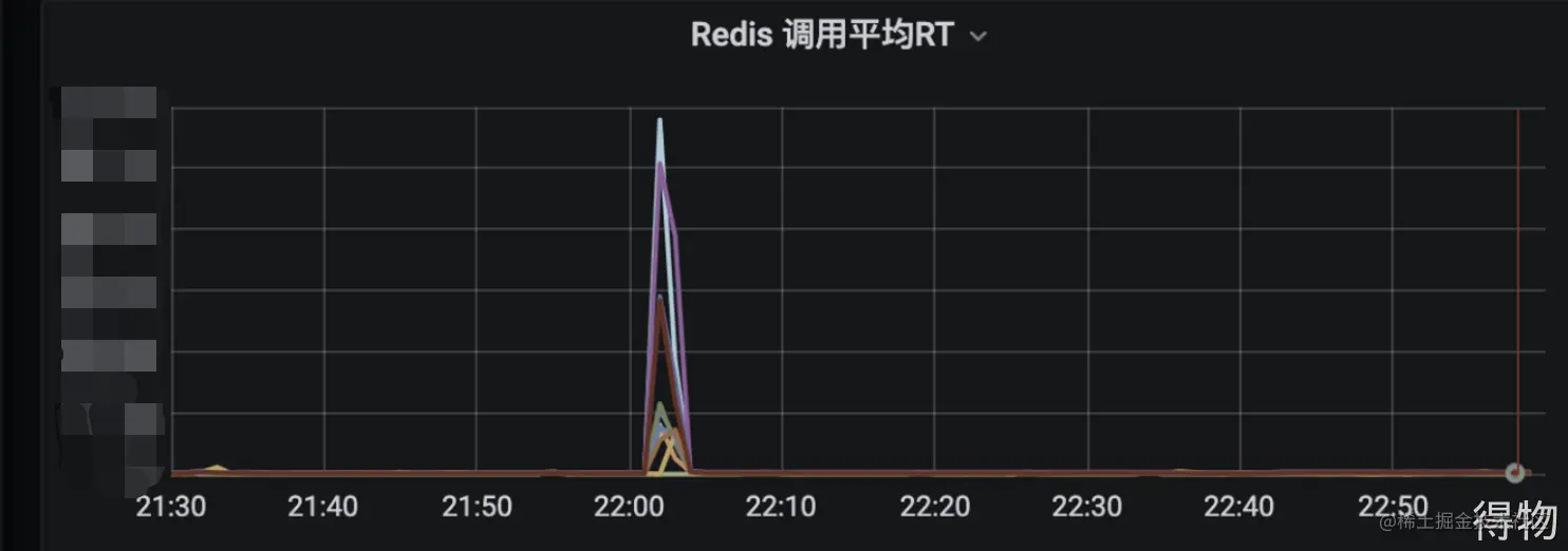 Reids指标中RT上升明显,猜测是由于redis抖动,导致RT上升,出现超时然后流量被打到了mysql上