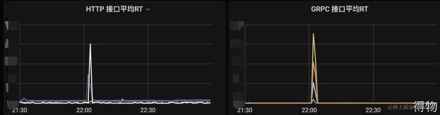 查看HTTP、GRPC指标,平均RT、99线明显上升