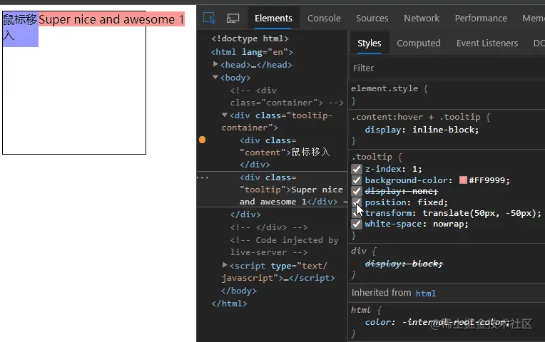 1、如何实现一个 tooltip 组件效果