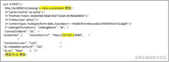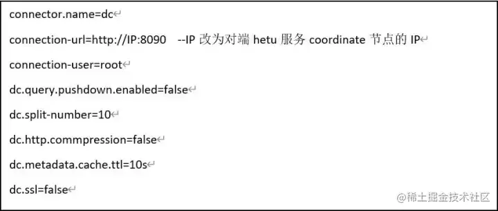 1. Hetu服务每个节点/etc/hetu/catalog目录下创建dc.properties文件,写入以下内容: