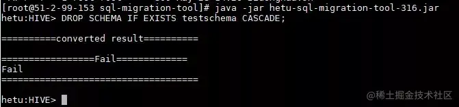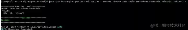 2. 执行模式:java -jar hetu-sql-migration-tool-316.jar --execute " 待转换的hive-sql"