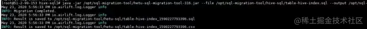 3. 文件模式:java -jar hetu-sql-migration-tool-316.jar --file 待转换的hive sql 文件 --output 转换后的文件目录