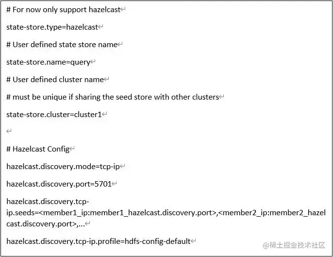 hazelcast.discovery.tcp-ip.seeds 和hazelcast.discovery.tcp-ip.profile 任选一种配置,如果两种都配置了,则hazelcast.discovery.tcp-ip.seeds 生效,建议hazelcast.discovery.tcp-ip.seeds 配置2个地址及以上。