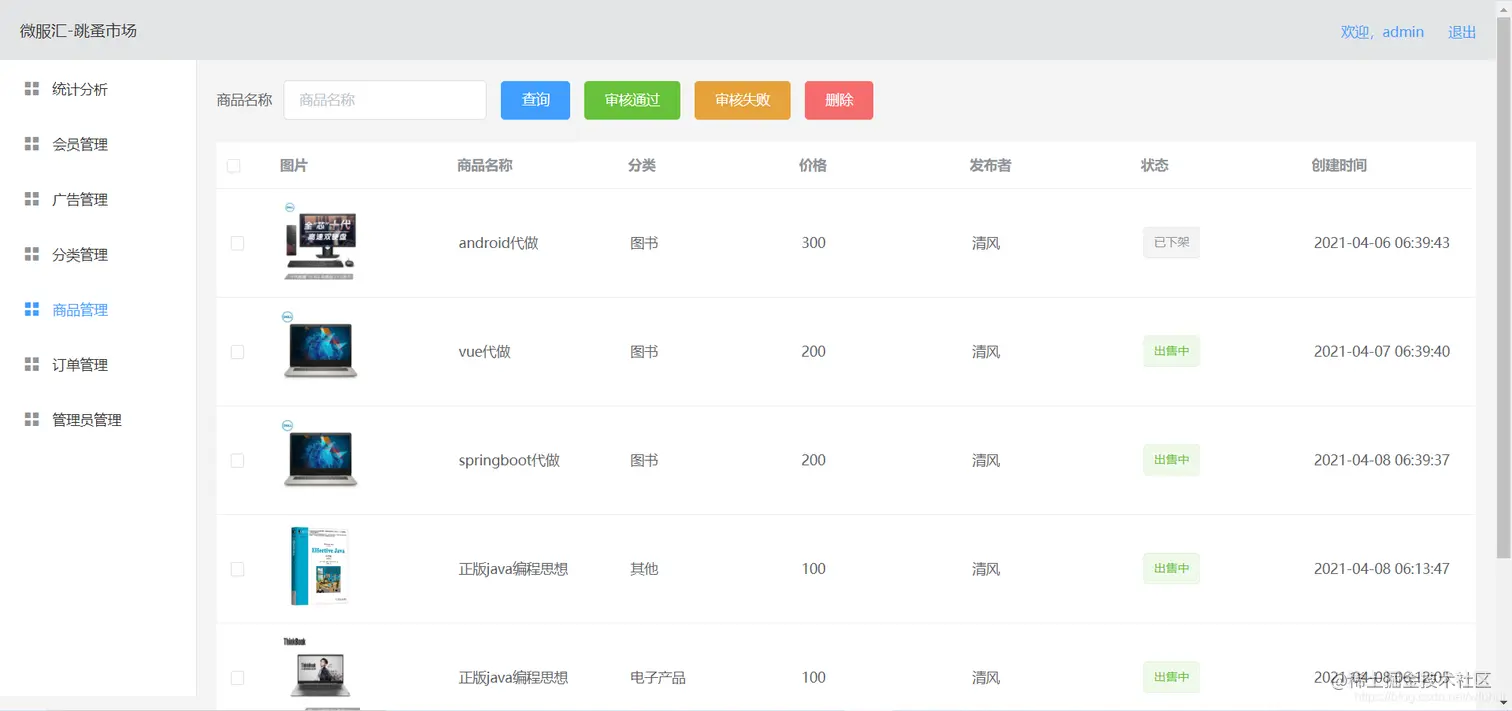 商品管理:商品展示及审核删除