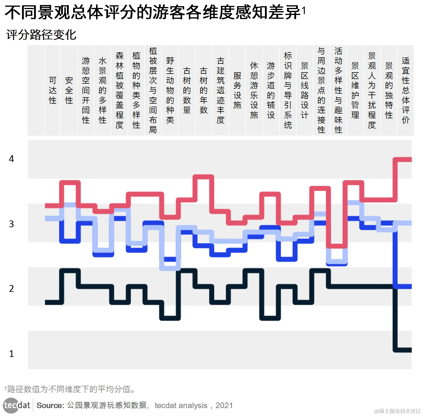 不同满意度的游客各维度景观 感知差异