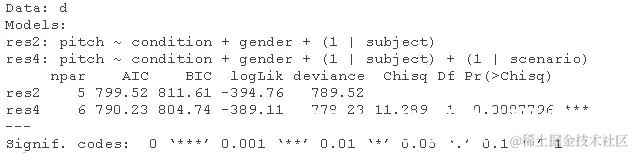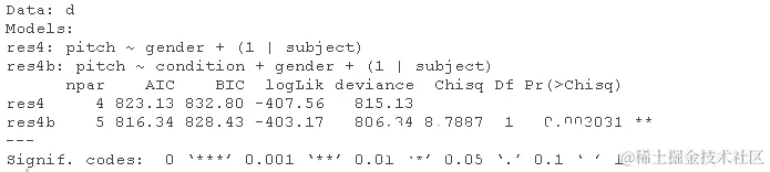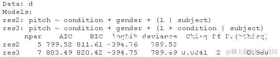 然而,其他人会认为,我们应该保持我们的模型最全面,并且应该包括随机斜率,即使它们没有改善模型!