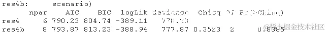 dev0 <- -2*logLik(res4) # 较简单的偏差模型