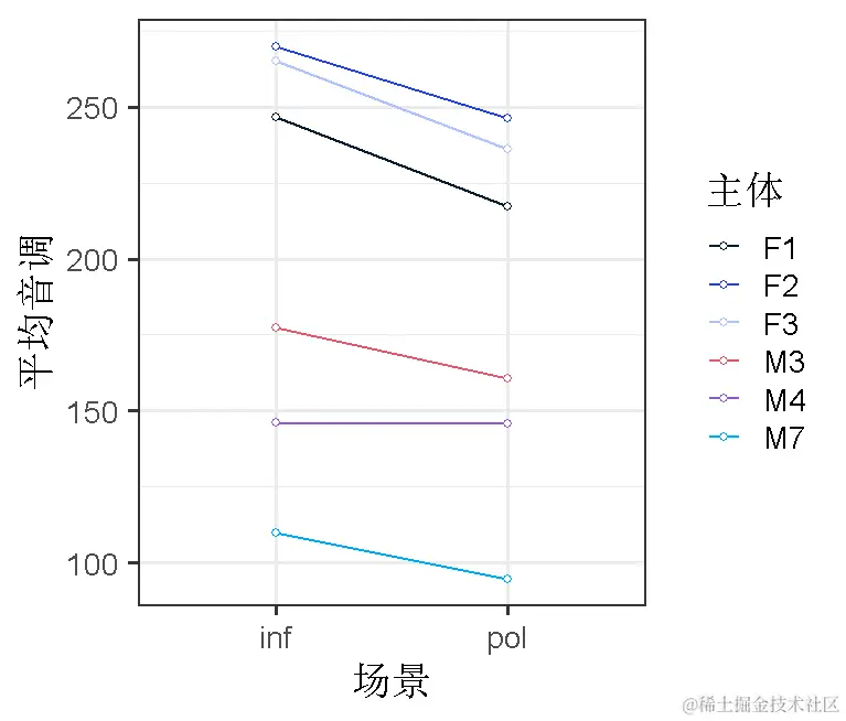 声调=截距+礼貌+性别+(1|个体)+ϵ