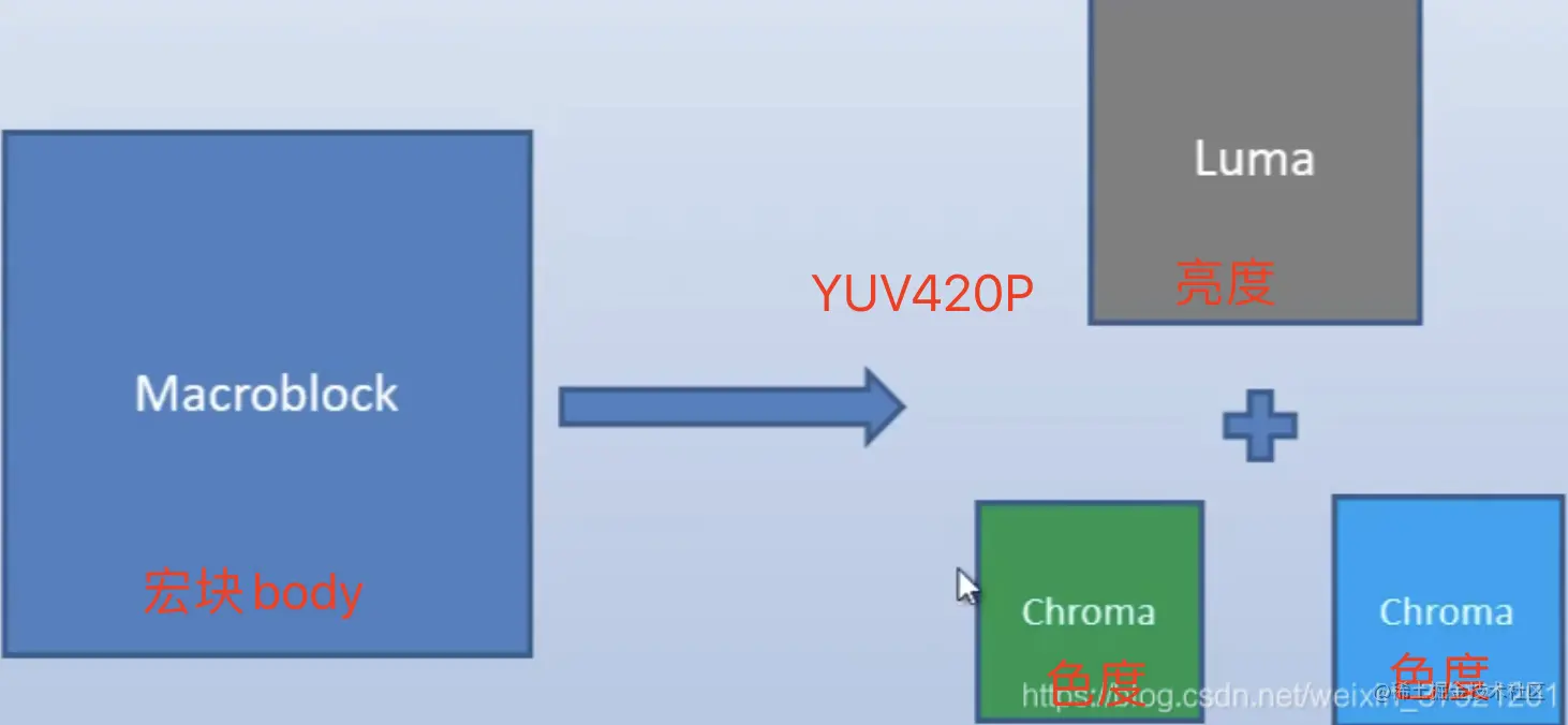 宏块是视频信息的主要承载者,因为它包含着每一个像素的亮度和色度信息。视频解码最主要的工作则是提供高效的方式从码流中获得宏块中的像素阵列。