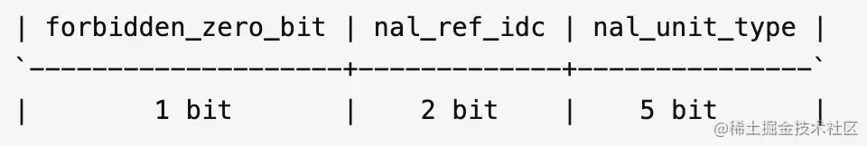 NALU Header是紧随StartCode后的一个字节,按照位划分三块。