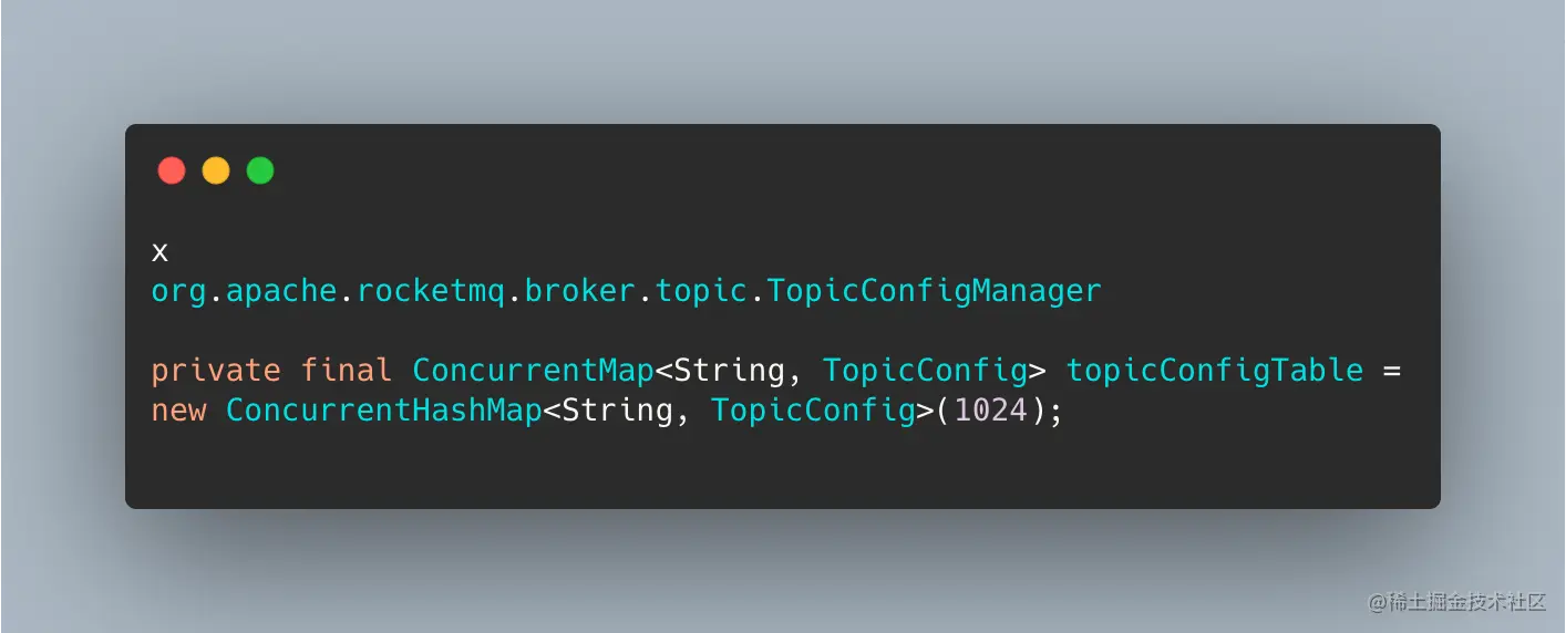 4.topicConfigTable 对象类型为 ConcurrentMap,Map 的 Key 为 Topic 名称,Value 为 Topic 对应的路由信息(包含读写队列数量信息)