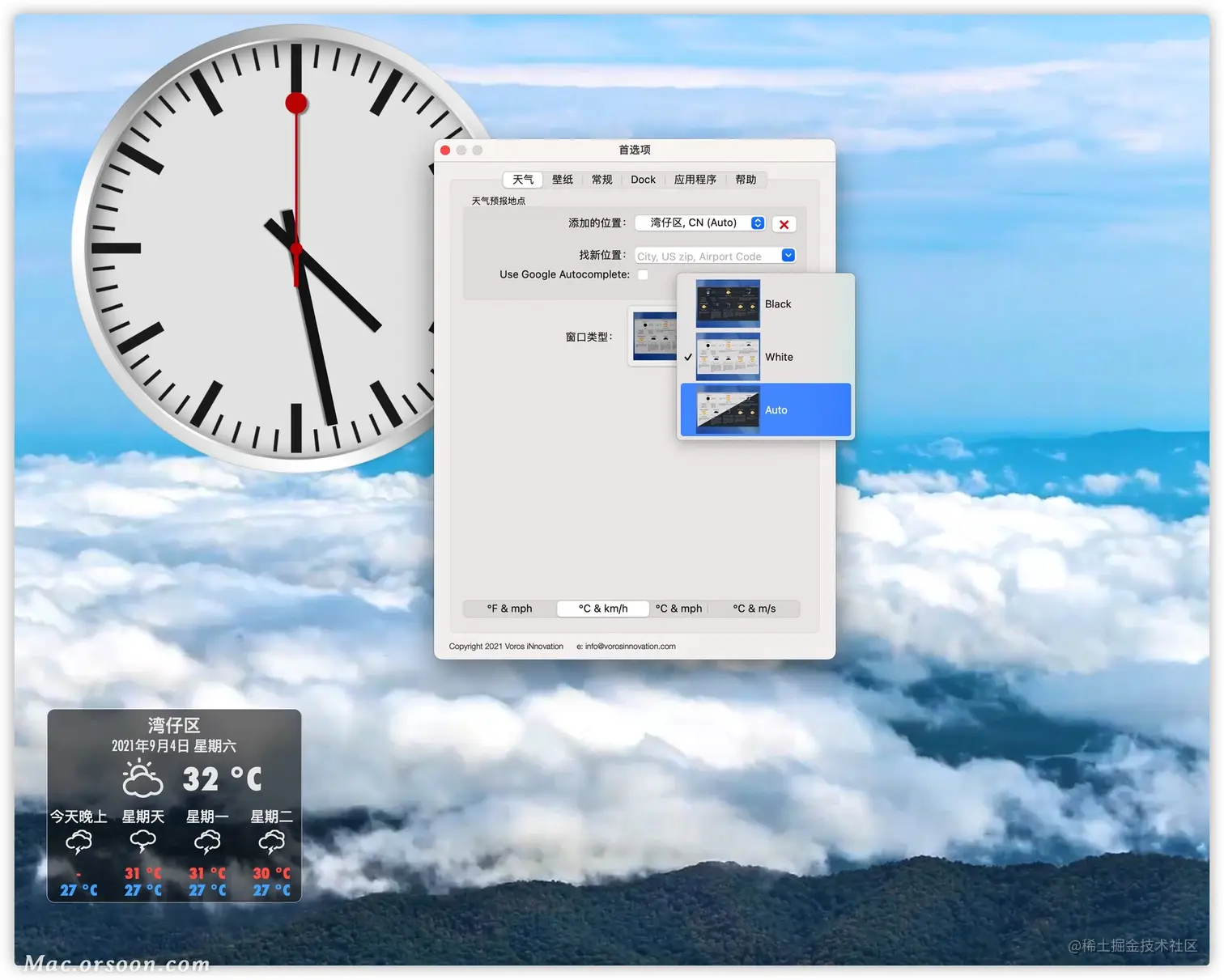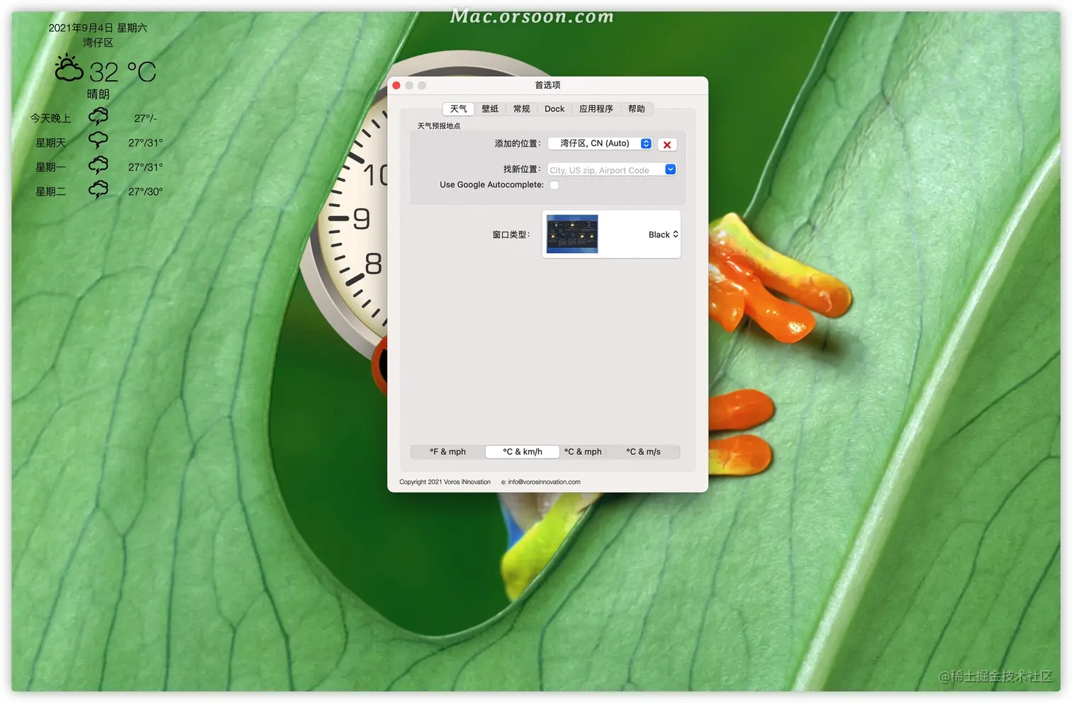 + 信息丰富的 Dock 图标可一目了然地显示天气状况和温度(当前、今天或明天的预报),即使墙纸未激活也是如此。