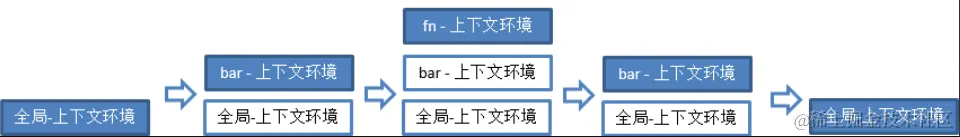 根据执行上下文的类型可以知道,在js程序执行过程中,一定会出现多种不同的执行上下文,但是,js是单线程语言,不能同时做多件事情。当js解释器初始执行代码时,它会首先默认进入全局上下文,而且每次调用一个函数都将会创建一个新的执行上下文,每次新创建的执行上下文都会被添加到作用域链的顶部,也就是执行栈或者调用栈。浏览器总是运行于调用栈的顶部的当前执行上下文。一旦完成,当前执行上下文就会从栈顶移除。