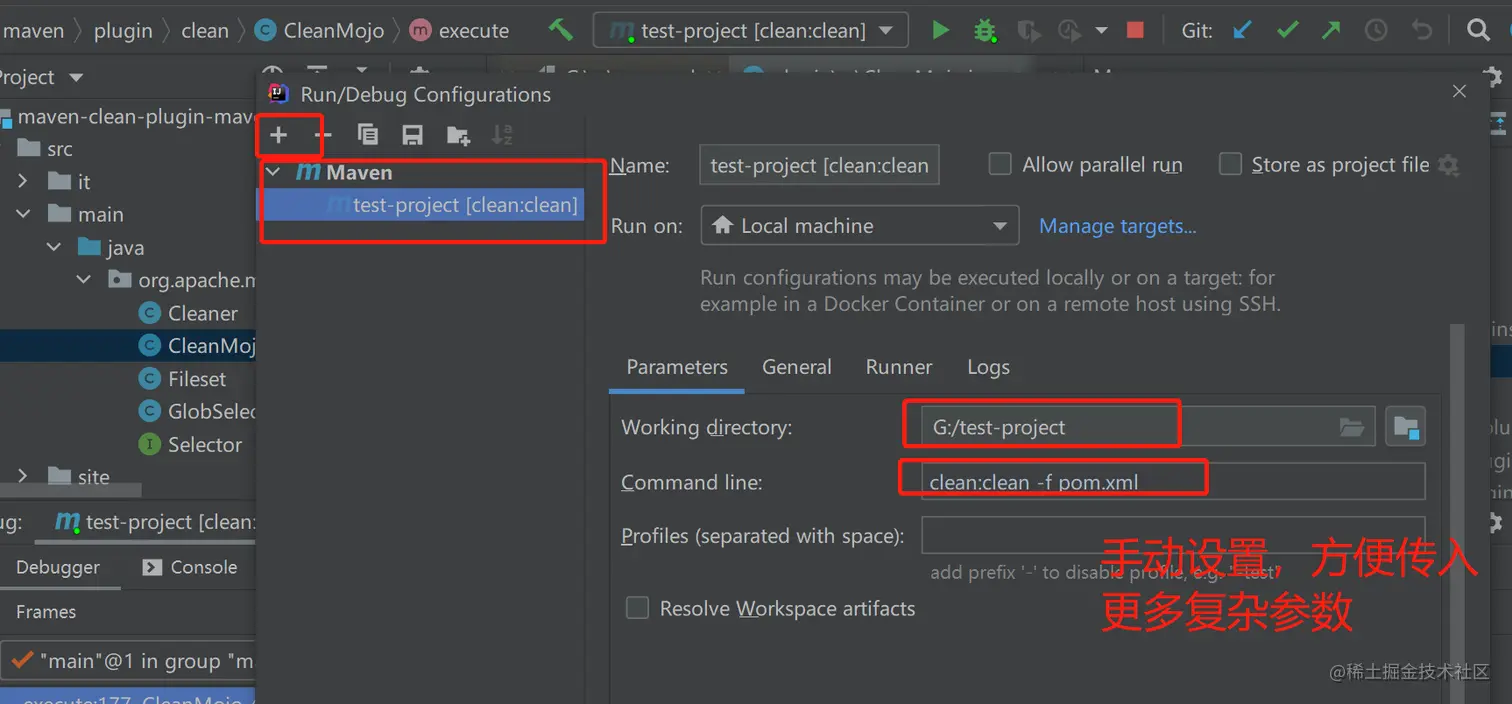 怎么调试呢,首先得触发maven的clean插件执行,是吧?怎么触发执行呢?