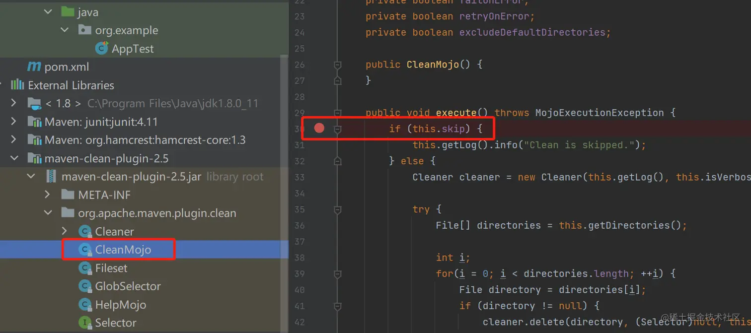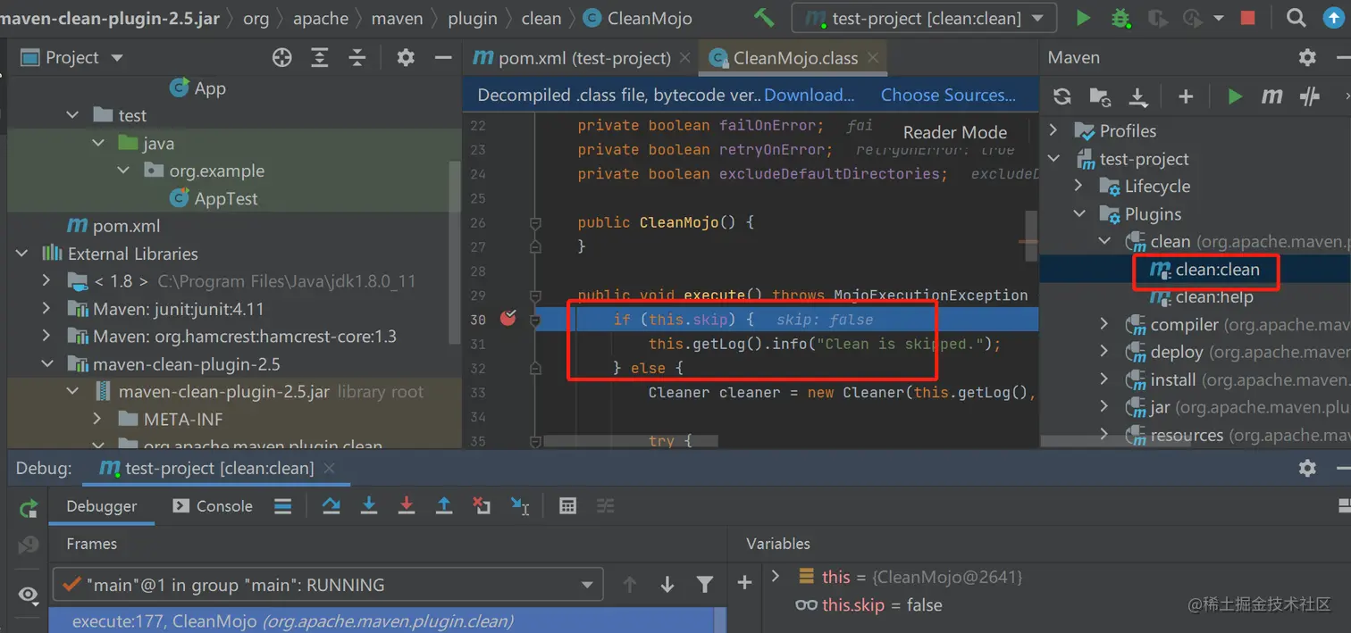 而mvn clean,一定会执行到clean插件中的CleanMojo这个class(这部分知识算是需要提前了解的部分):