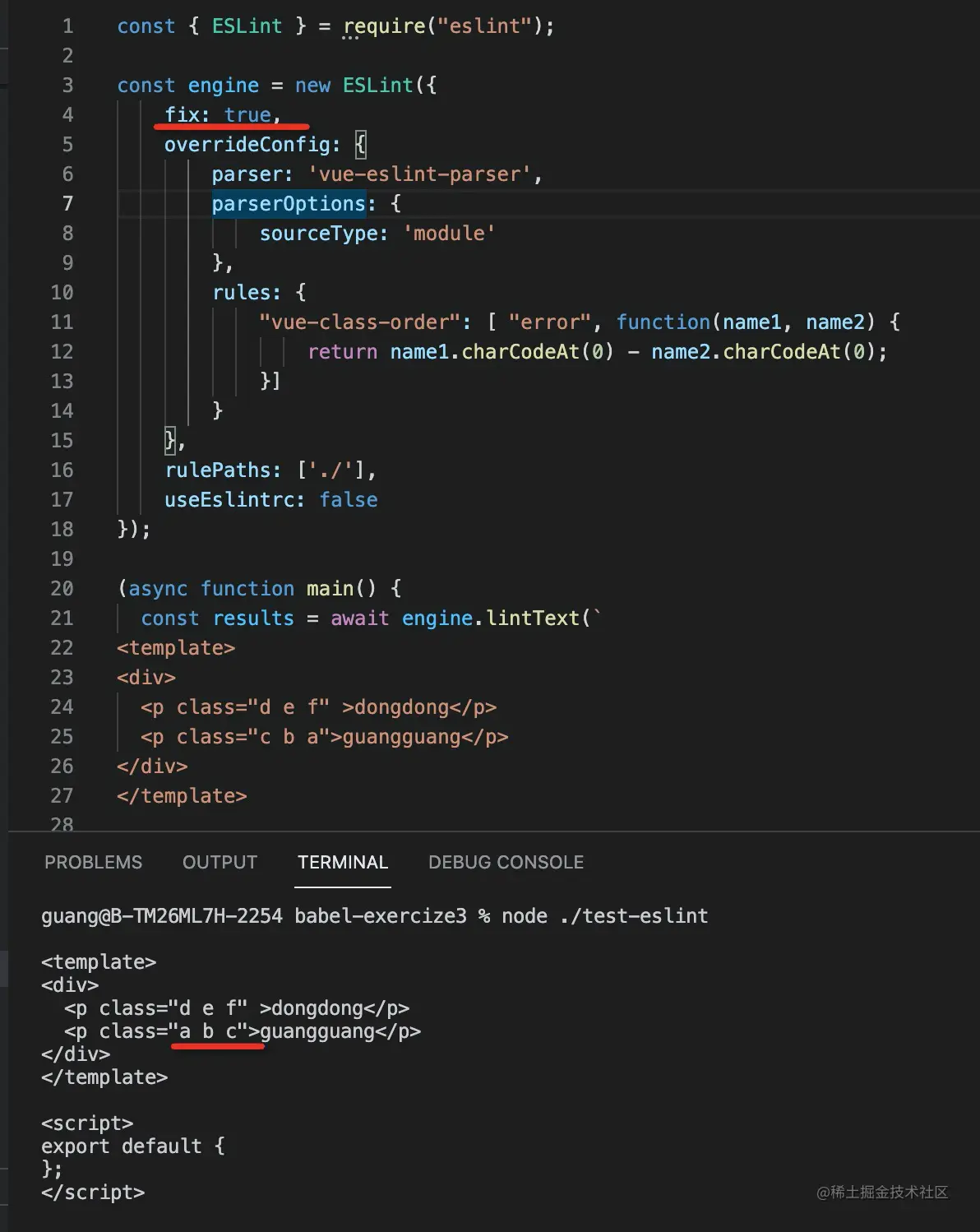 考虑到他可能没有写过 eslint 插件,所以我先把相对简单的校验和修复 class 名的顺序的插件摘出来实现了一下。