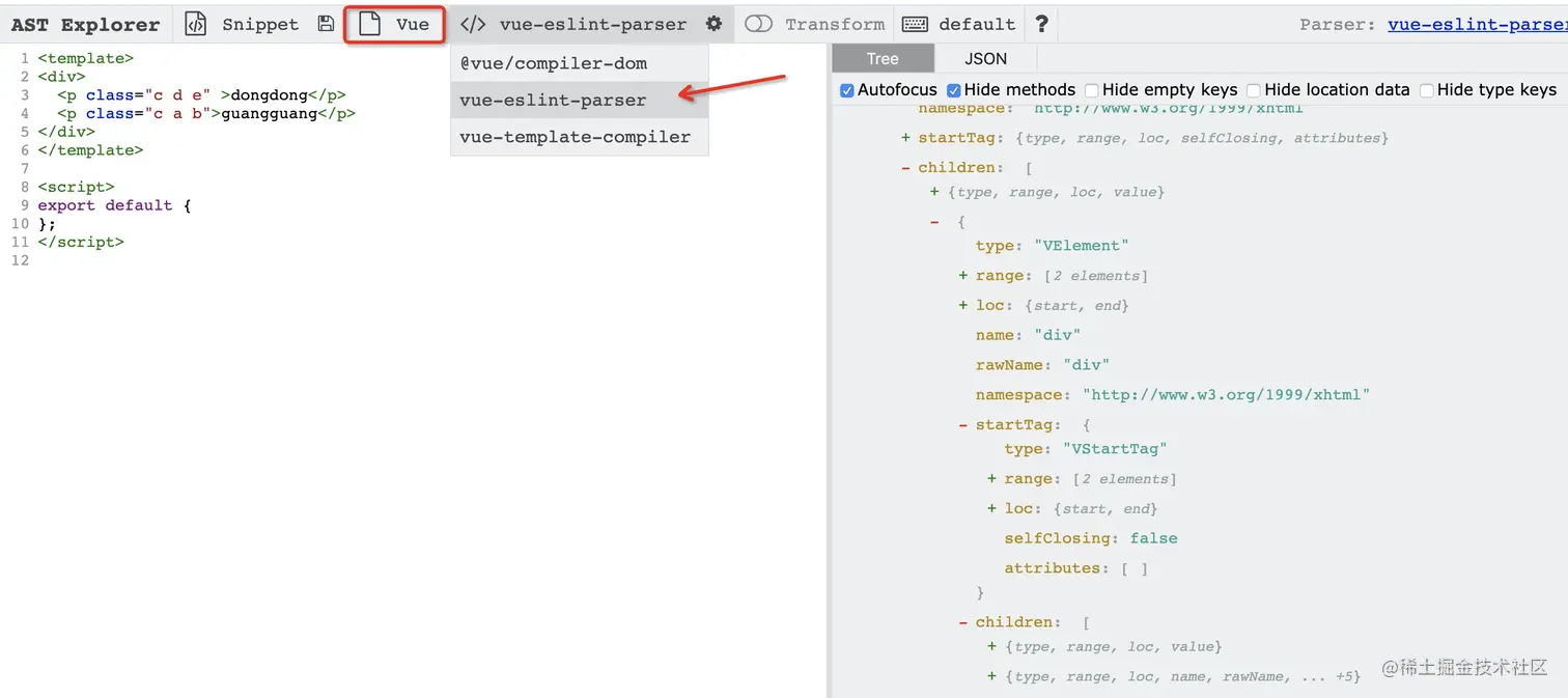接下来就是实现这个插件了,我们的目标是检查 VAttribute 节点,并且用自定义的比较器来对 class 排序。