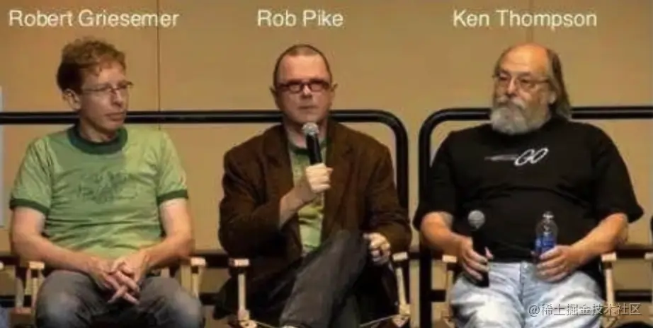 对了,我爸是 Google,背靠大树好乘凉啊。主创人员主要有三个,都是计算机领域的宗师级大牛:Rob Pike、Ken Thompson 和 Robert Griesemer。
