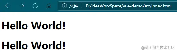 两个 h1 标签,一个有默认值,一个无默认值,我们都使用了 v-text 指令,来看结果