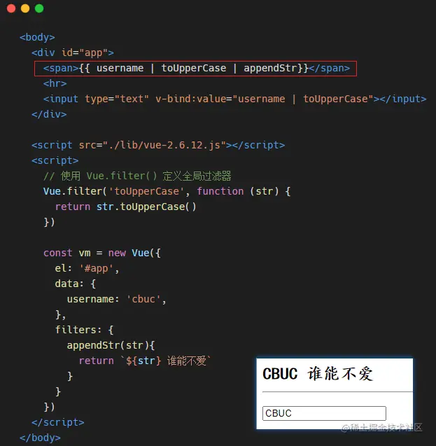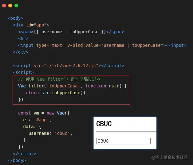 我们上面定义的过滤器是属于 私有过滤器,何为 私有?那就是这个过滤器只能在当前的 vm 实例所控制的 el 区域内使用,如果想要在多个 vm 实例之间共享过滤器,则需要定义全局过滤器~!