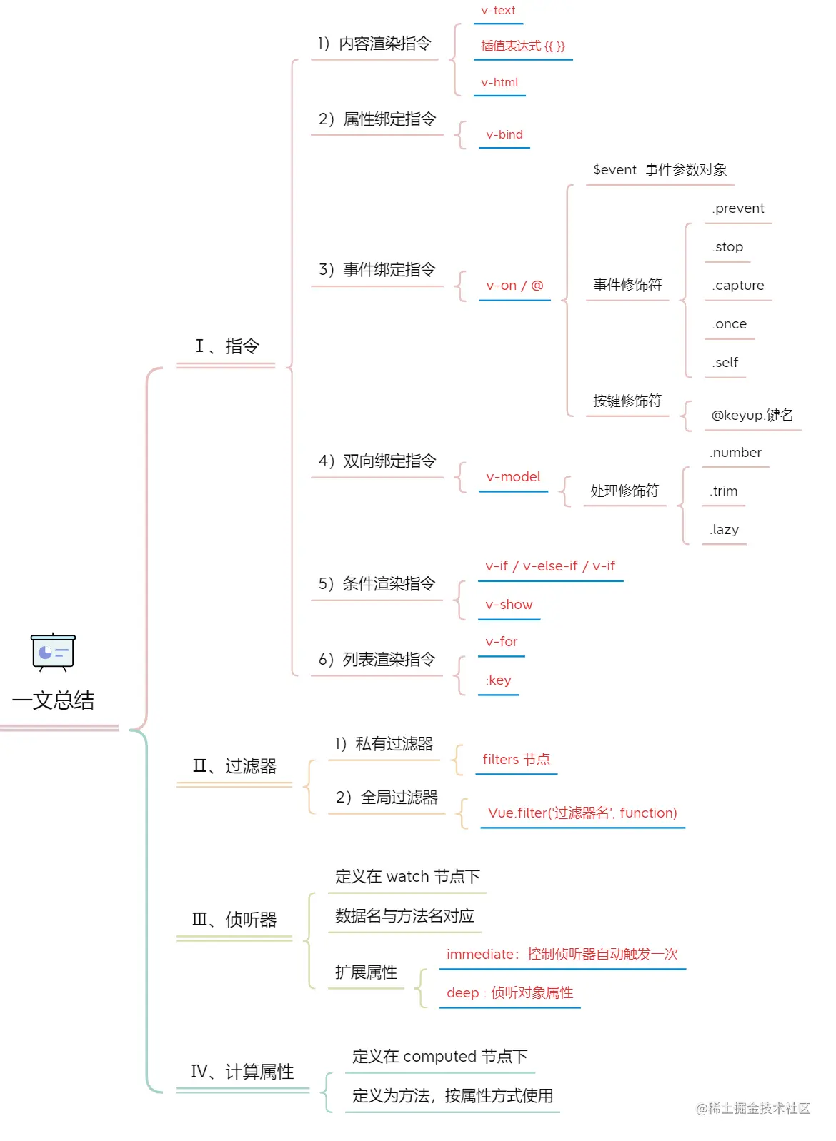 vue 中的指令按照不同的用途可以分为 6 大类,如下: