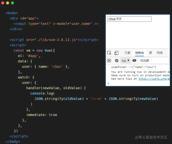 这个时候在控制台就可以发现,当初次绑定值的时候就已经触发了侦听器