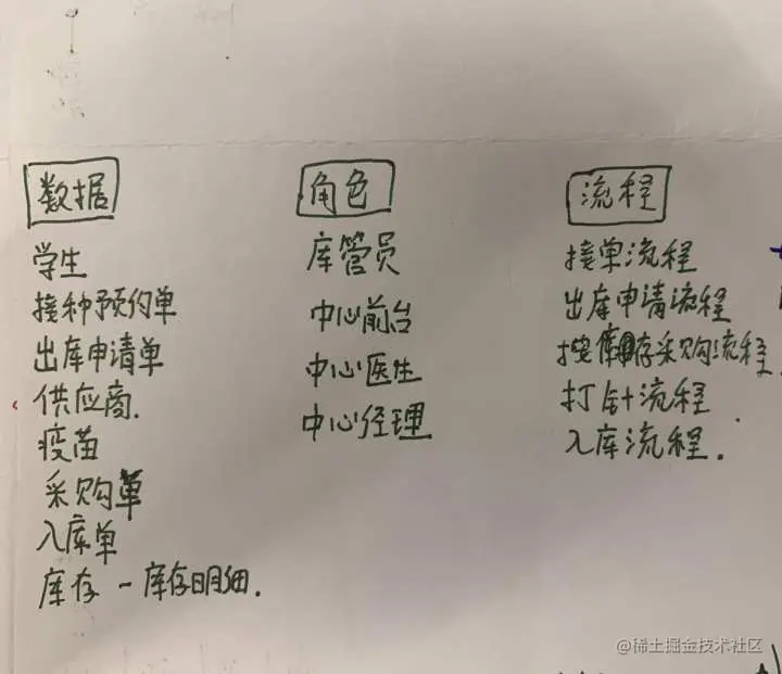 因为工作流是跟需求相挂钩的,我首先确定了想实现的具体功能,我希望搭建的学校疫苗中心管理,能满足以下三点需求: