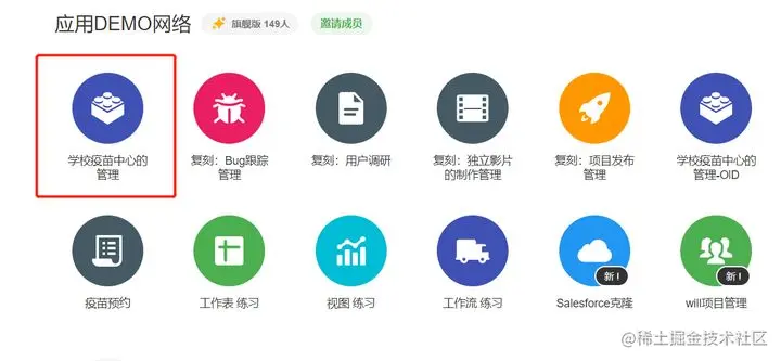 在我搭建的过程中,我发现应用列表里也有一个疫苗相关的应用,就去看了一下。虽然它的很简单,但我发现它的工作表上有我没有的字段信息(接种地点和疫苗的第一针/第二针),我就赶紧补上了。