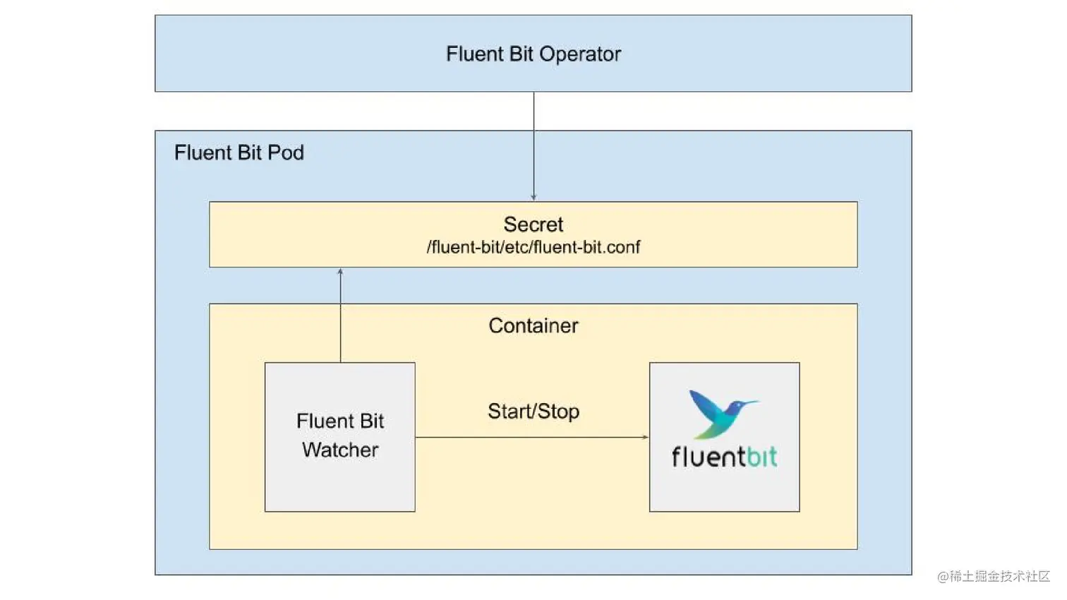 Fluent Bit Pod 中不是直接运行的 Fluent Bit,而是运行了一个名为 fluent-bit-watcher 的进程,fluent-bit-watcher 在启动后会启动 Fluent Bit,同时监听配置文件。当配置文件发生变化时,fluent-bit-watcher 会重启 Fluent Bit 以重新加载配置文件。